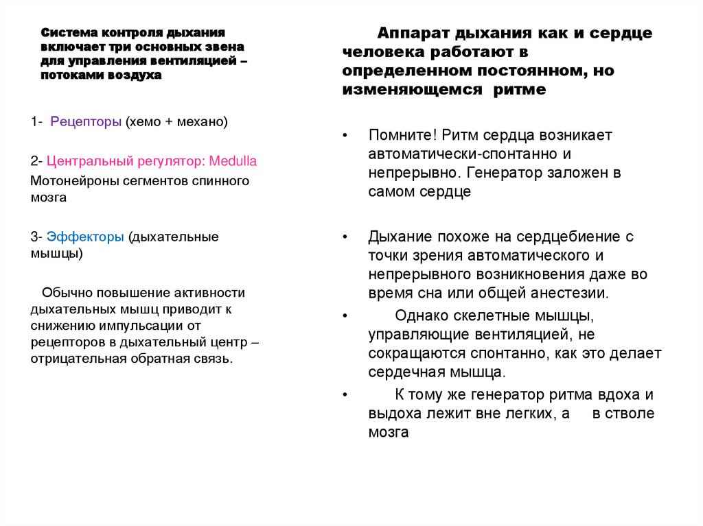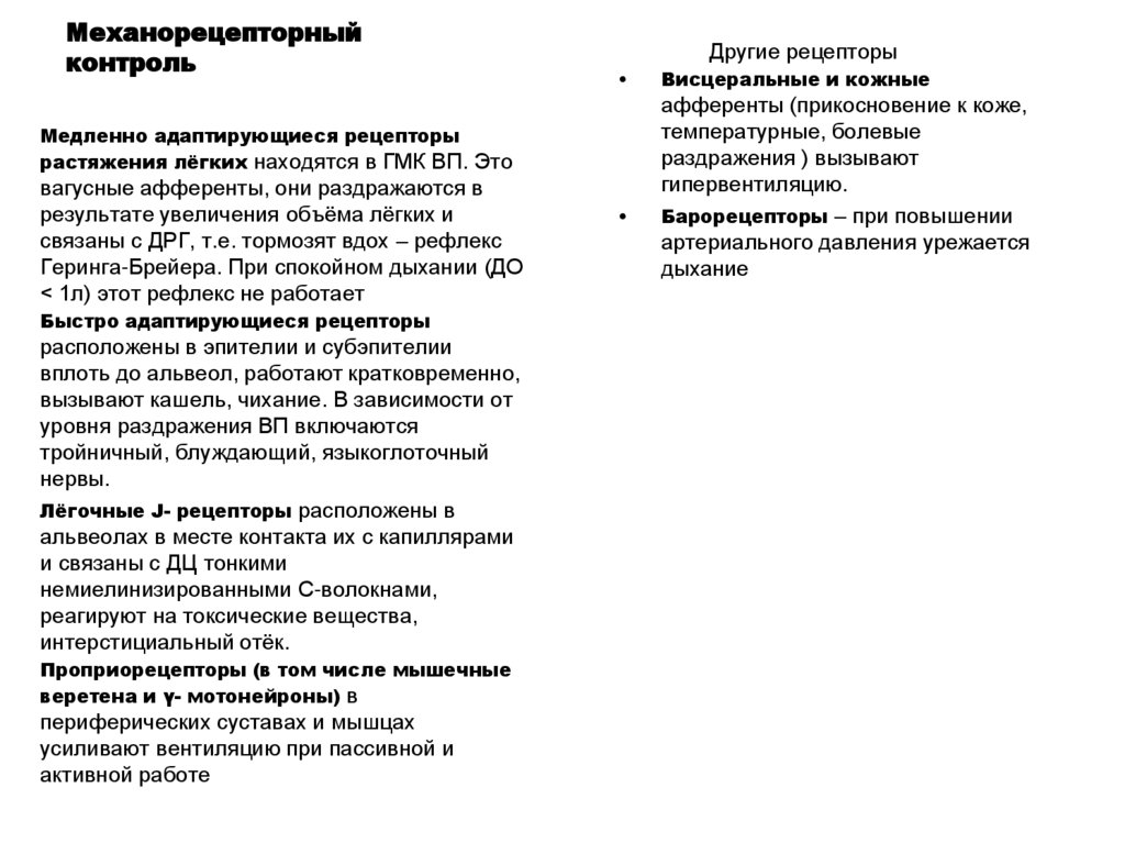 1- Рецепторы (хемо + механо)Аппарат дыхания как и сердце