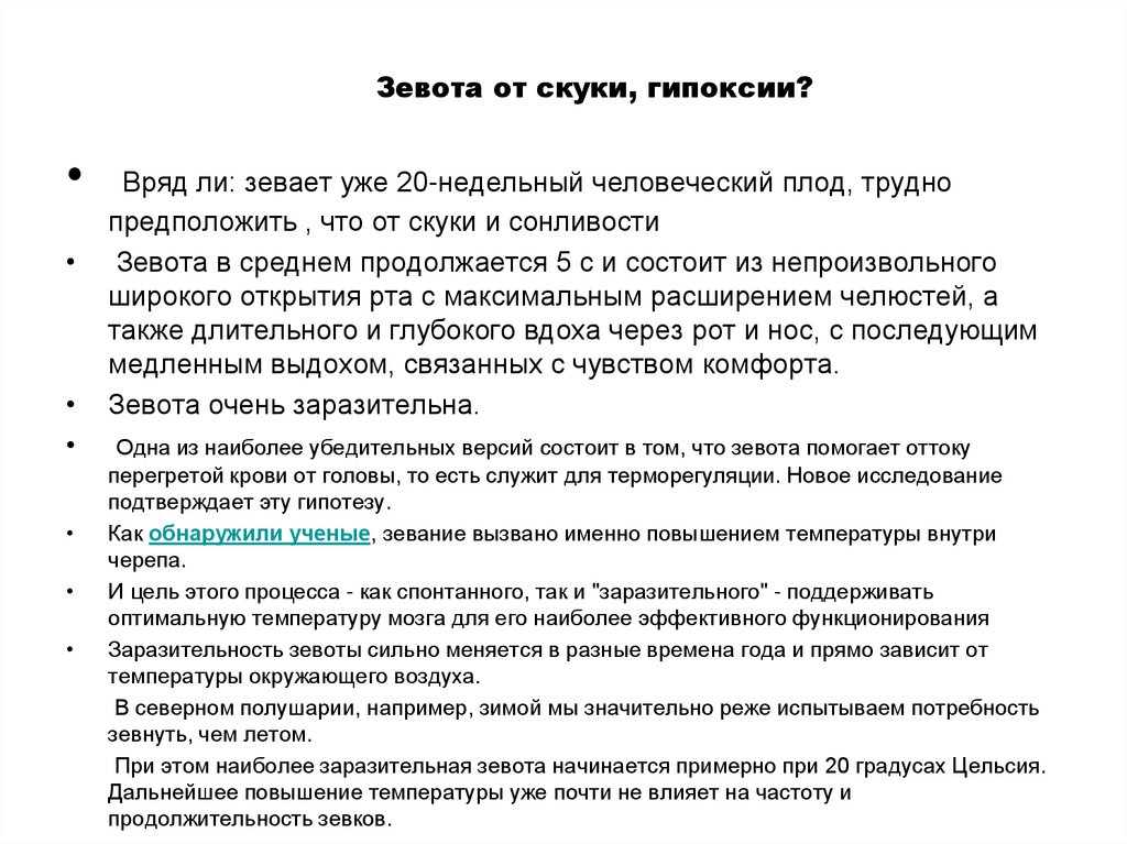 При этом наиболее заразительная зевота начинается примерно при 20 градусах Цельсия.