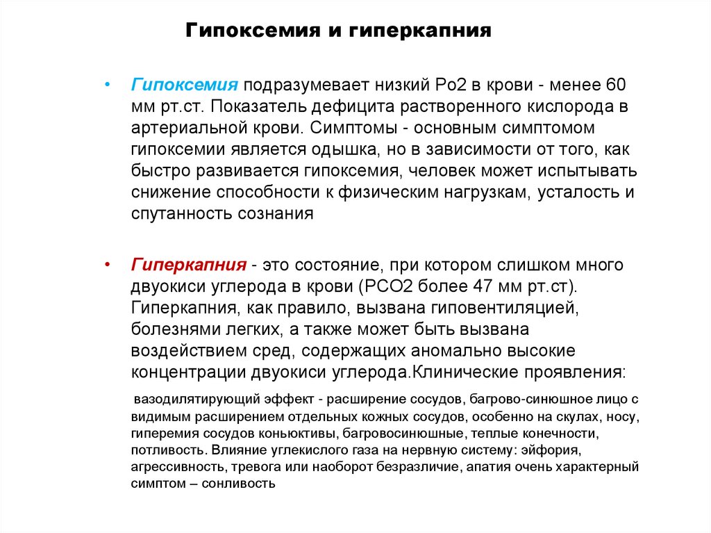 Гипоксемия подразумевает низкий Рo2 в крови - менее 60