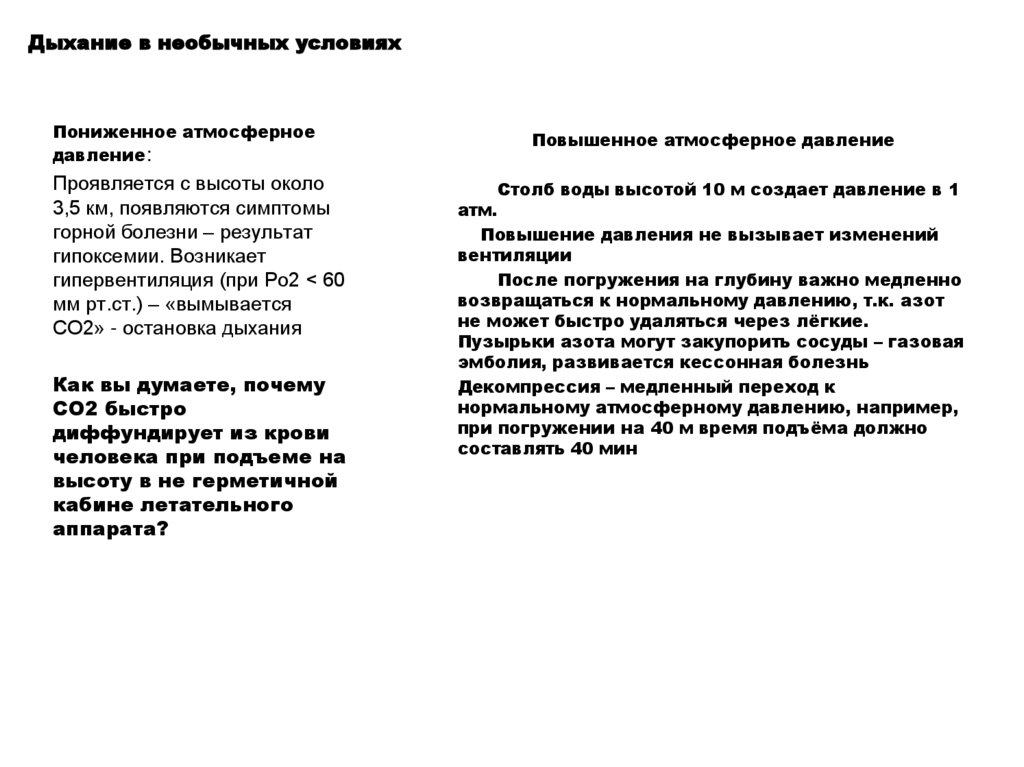 потливость. Влияние углекислого газа на нервную систему: эйфория,