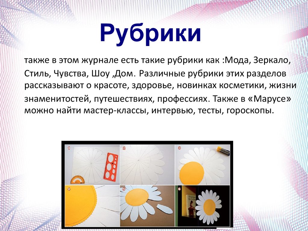 Рубрикитакже в этом журнале есть такие рубрики как :Мода, Зеркало,