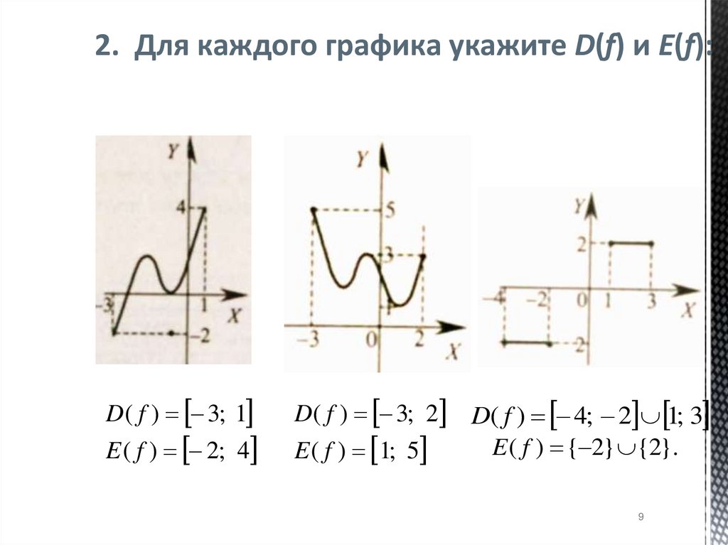 9. 2. Для каждого графика укажите D(f) и E(f):