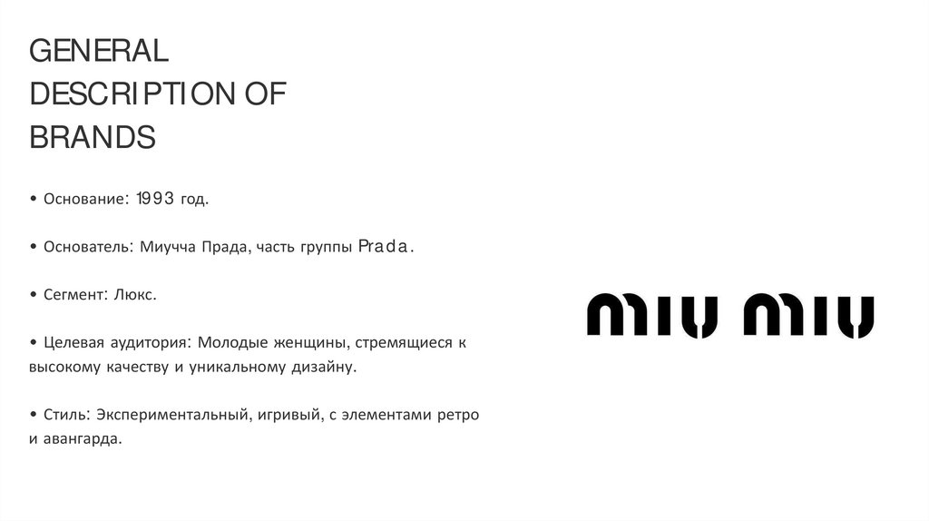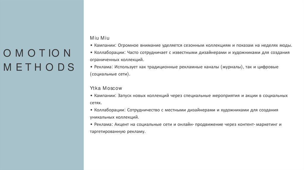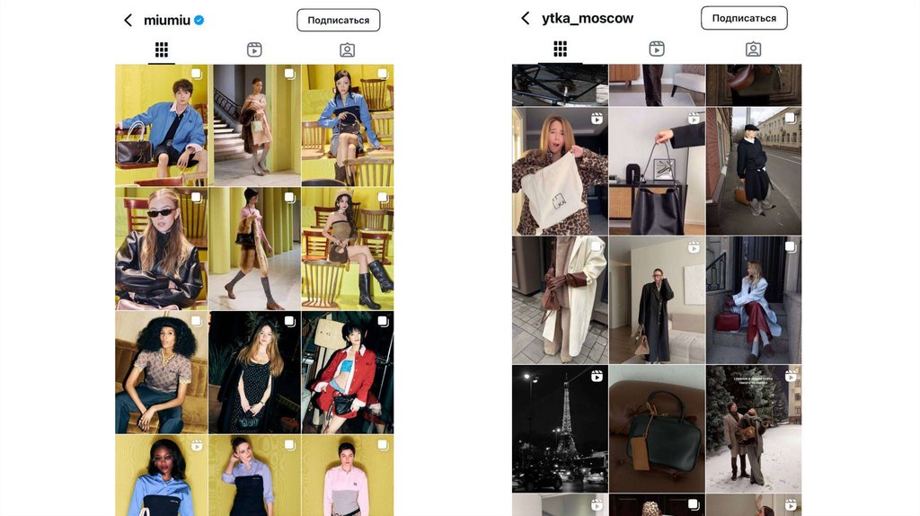 Miu Miu и Ytka Moscow представляют собой два разныхподхода к моде. Miu Miu ориентирован на создание люксового