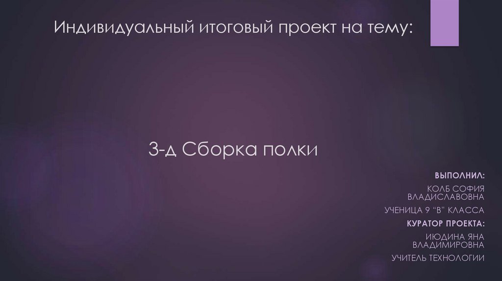 1. Индивидуальный итоговый проект на тему: 3-д Сборка полки