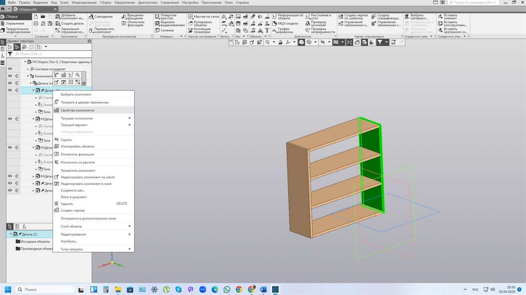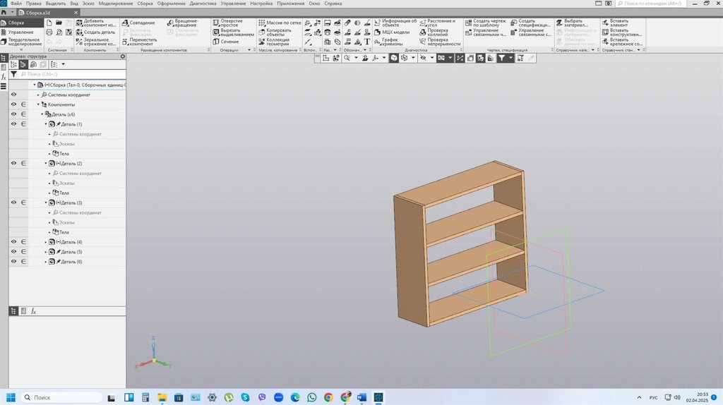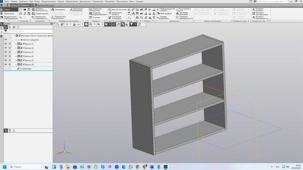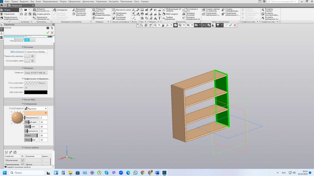 3. Разработать сборную 3D-модель полки с учетом выбранного материала и