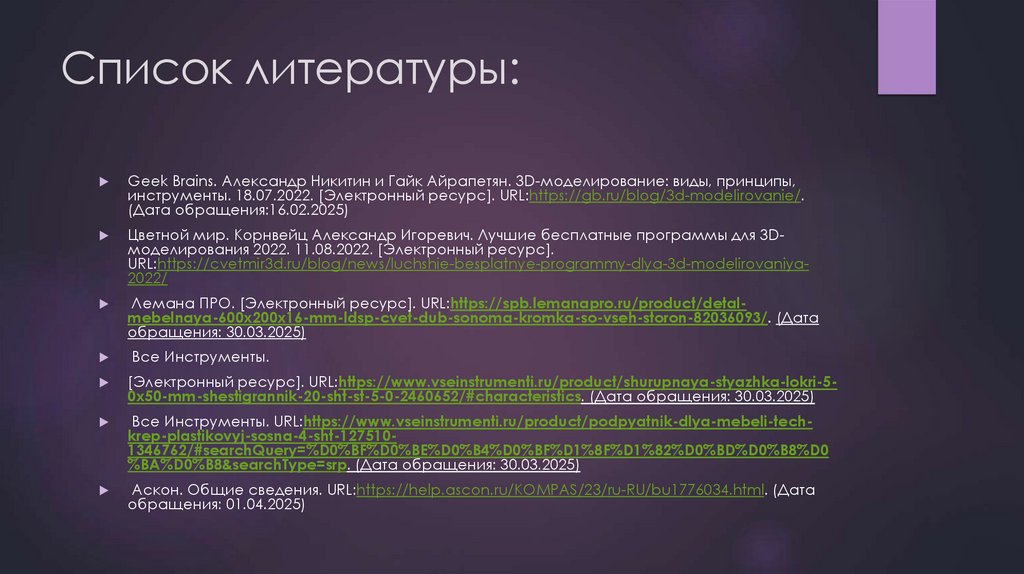 Geek Brains. Александр Никитин и Гайк Айрапетян. 3D-моделирование: виды, принципы,инструменты. 18.07.2022. [Электронный ресурс]. URL:https://gb.ru/blog/3d-modelirovanie/.