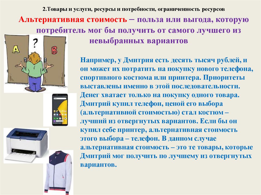 2. Товары и услуги, ресурсы и потребности, ограниченность ресурсовОграниченность ресурсов – недостаточность имеющихся в