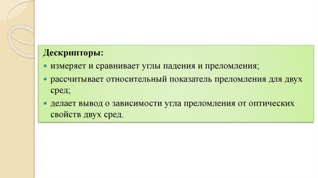 8.5.1.5 -применять формулу Снелла при решении задач.
