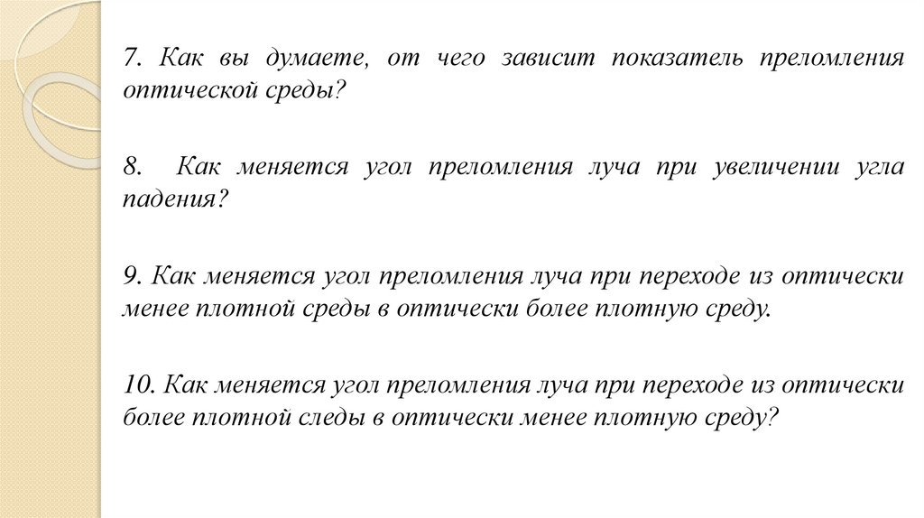 8. (G/E) Экспериментальная работа «Наблюдение преломление света»