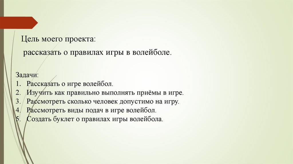 Цель моего проекта:рассказать о правилах игры в волейболе.