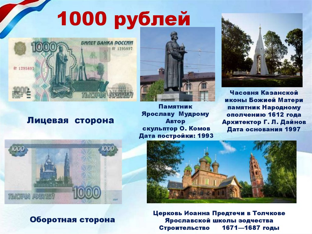 1000 рублейЛицевая сторона