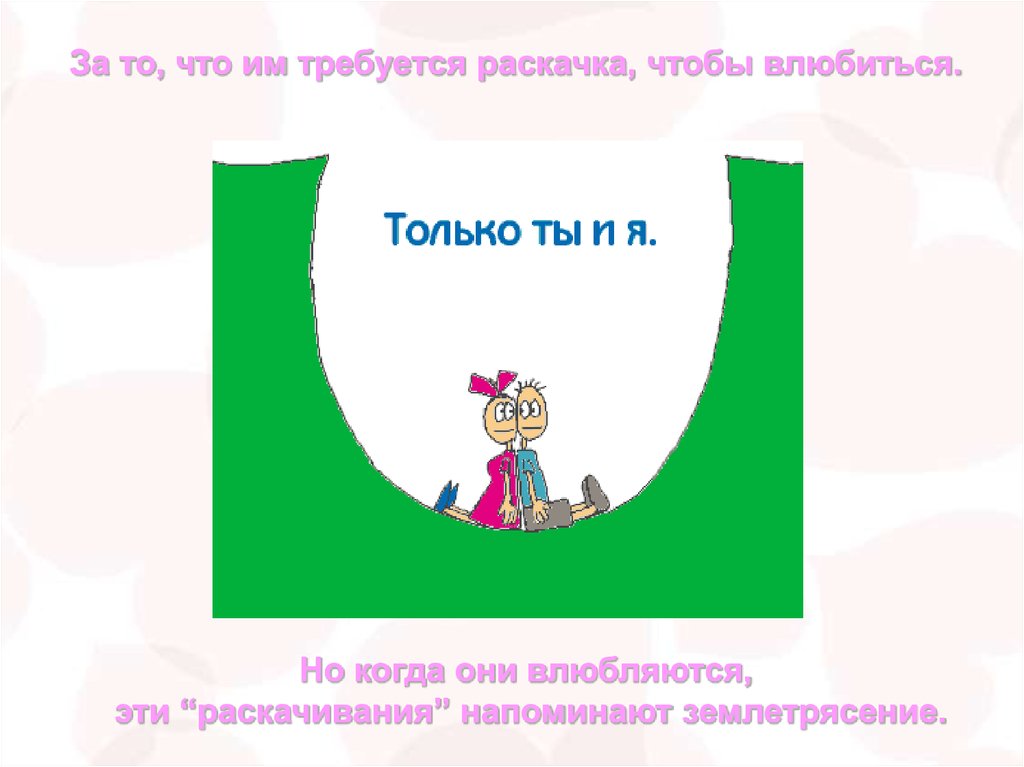 За то, что им требуется раскачка, чтобы влюбиться.Но когда они влюбляются,