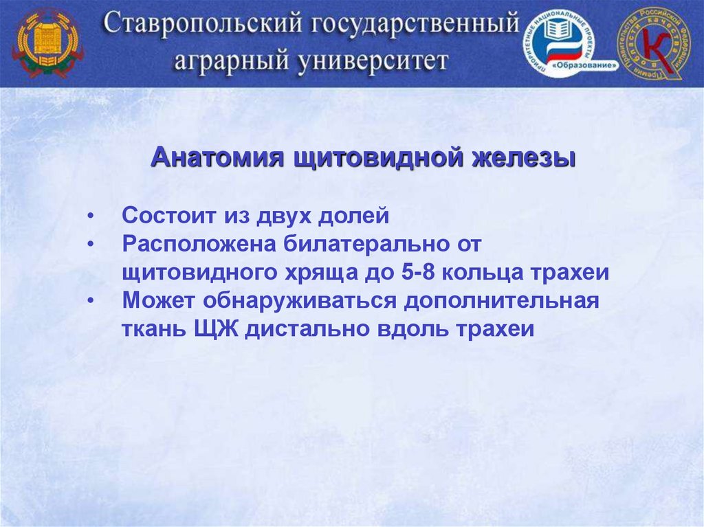 Анатомия щитовидной железыСостоит из двух долей