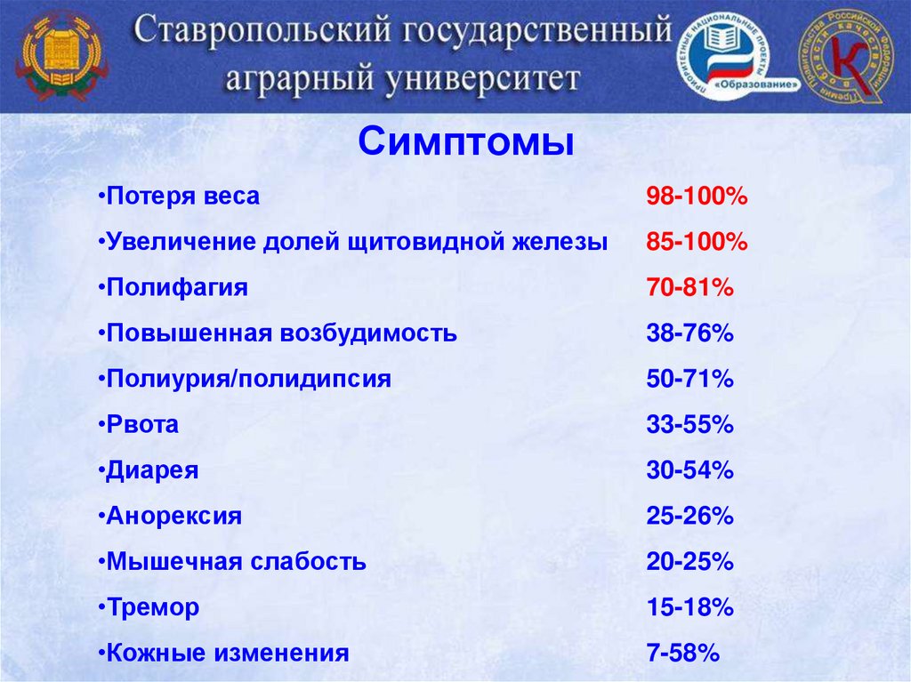 Симптомы•Потеря веса