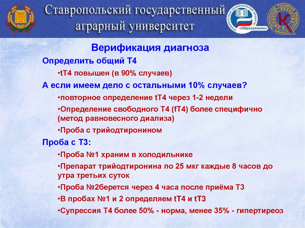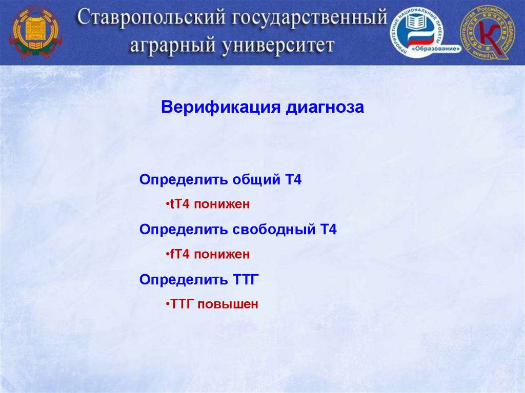 Верификация диагнозаОпределить общий Т4