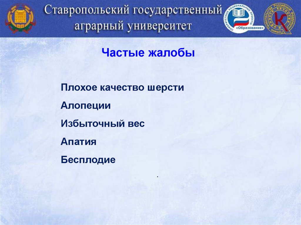 •Ухудшение качества шерсти