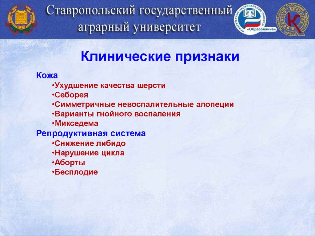 Клинические признакиКожа