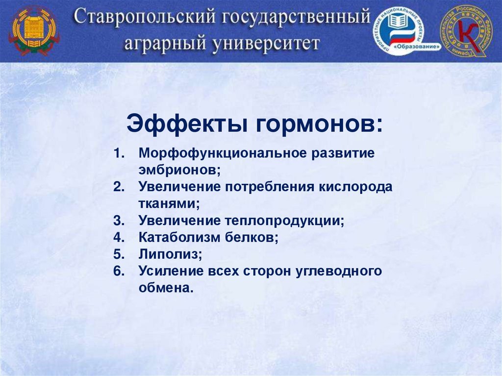 Эффекты гормонов:1. Морфофункциональное развитие