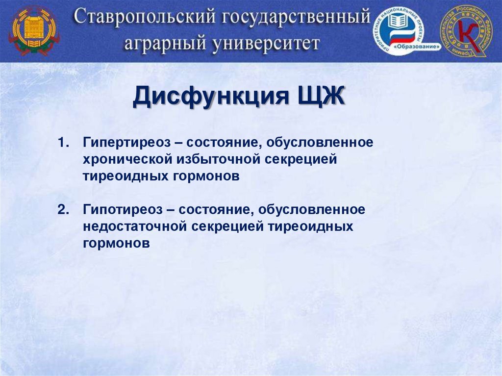 2. Гипотиреоз – состояние, обусловленное