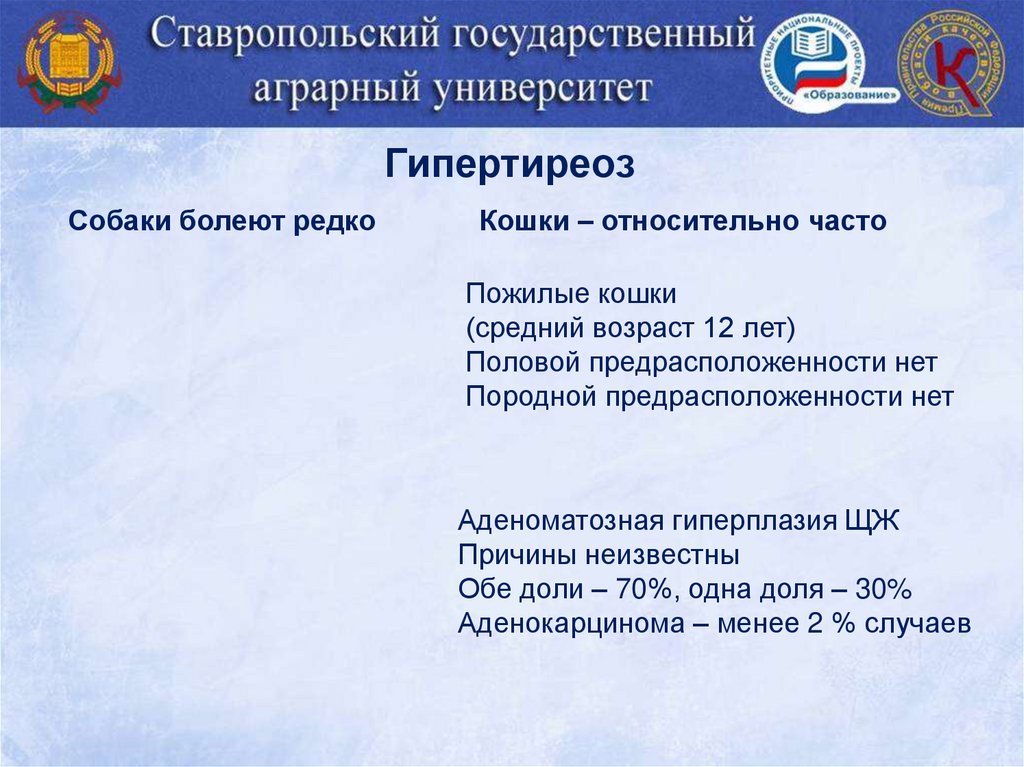 ГипертиреозСобаки болеют редко