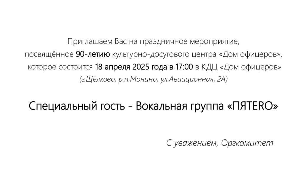 Приглашаем Вас на праздничное мероприятие,посвящённое 90-летию культурно-досугового центра «Дом офицеров»,