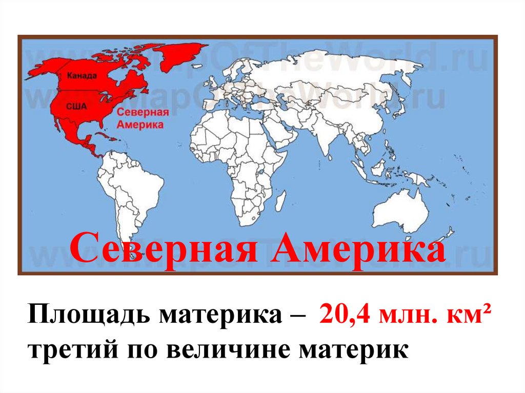 Северная АмерикаПлощадь материка – 20,4 млн. км²