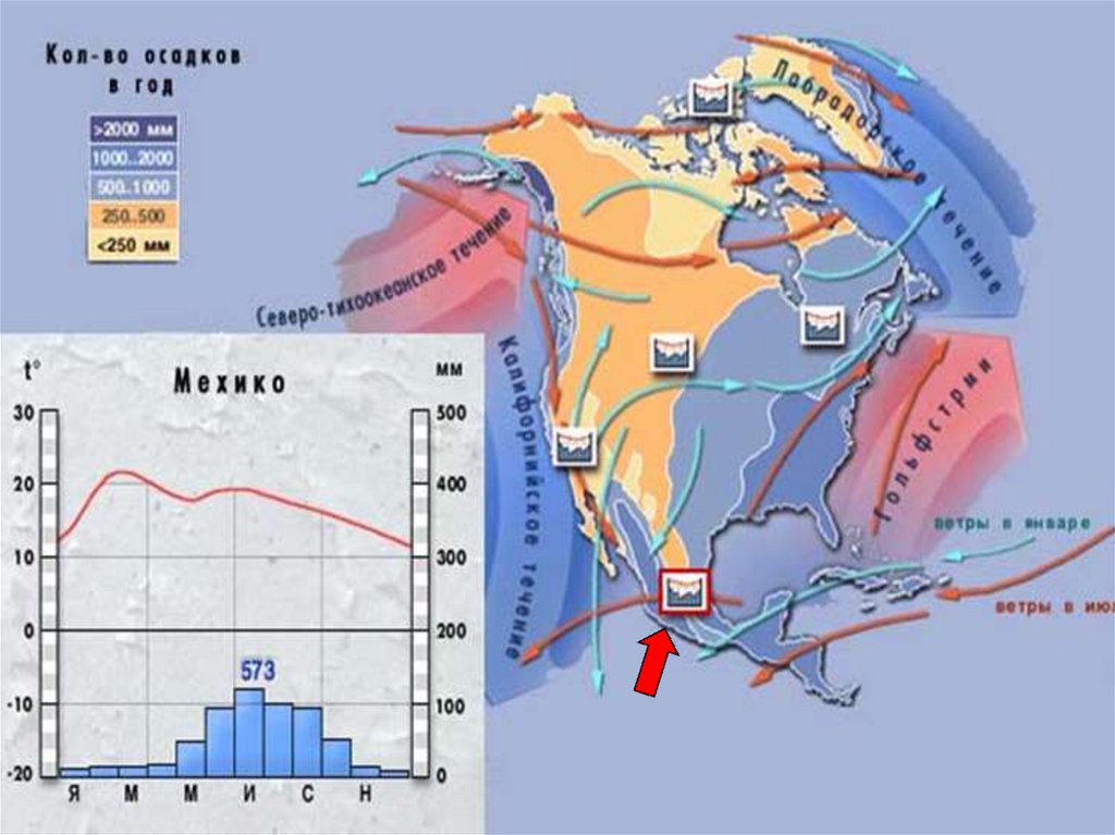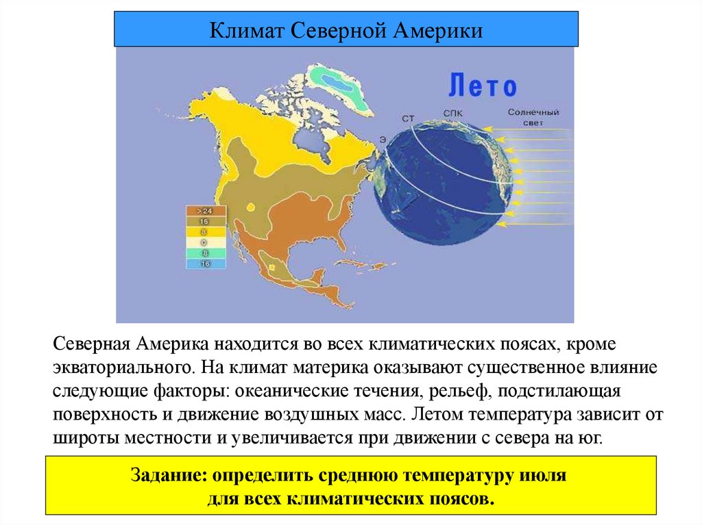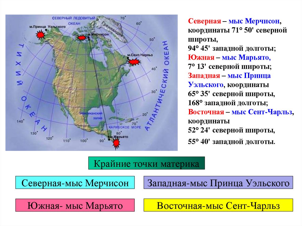 4. 1.Относительно экватора Северная Америка расположена в северном полушарии . 2. Относительно нулевого меридиана - в западном