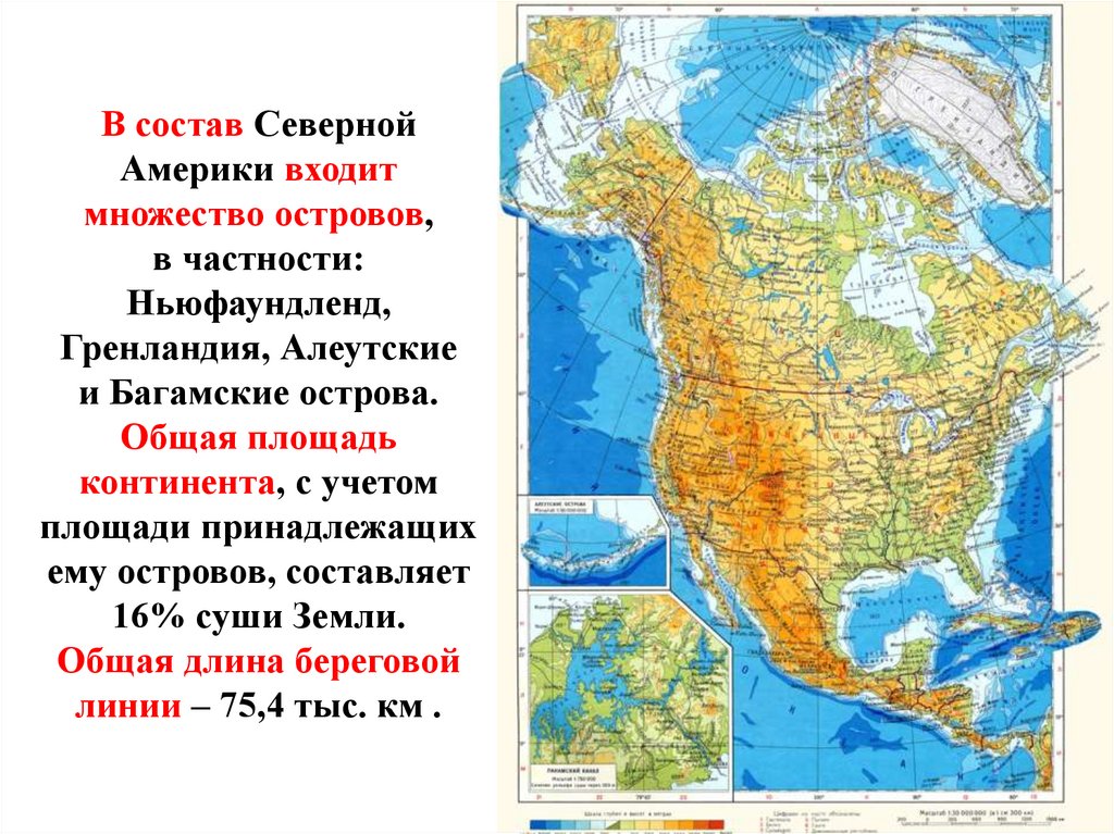 3. В состав Северной Америки входит множество островов, в частности: Ньюфаундленд, Гренландия, Алеутские и Багамские острова.