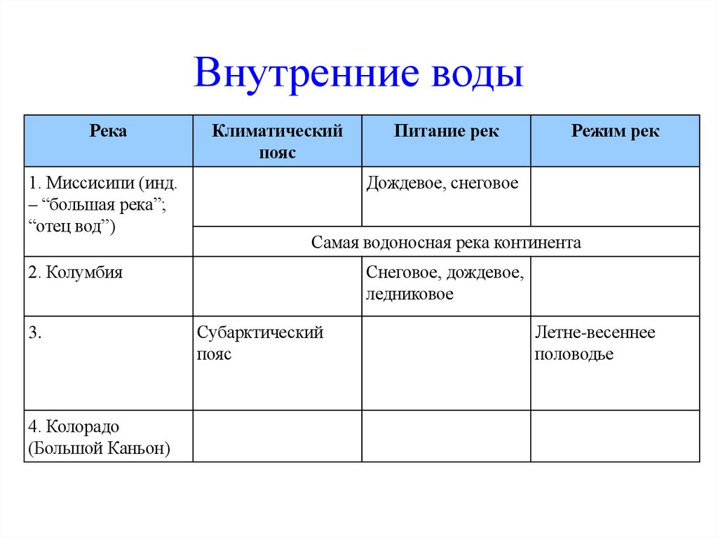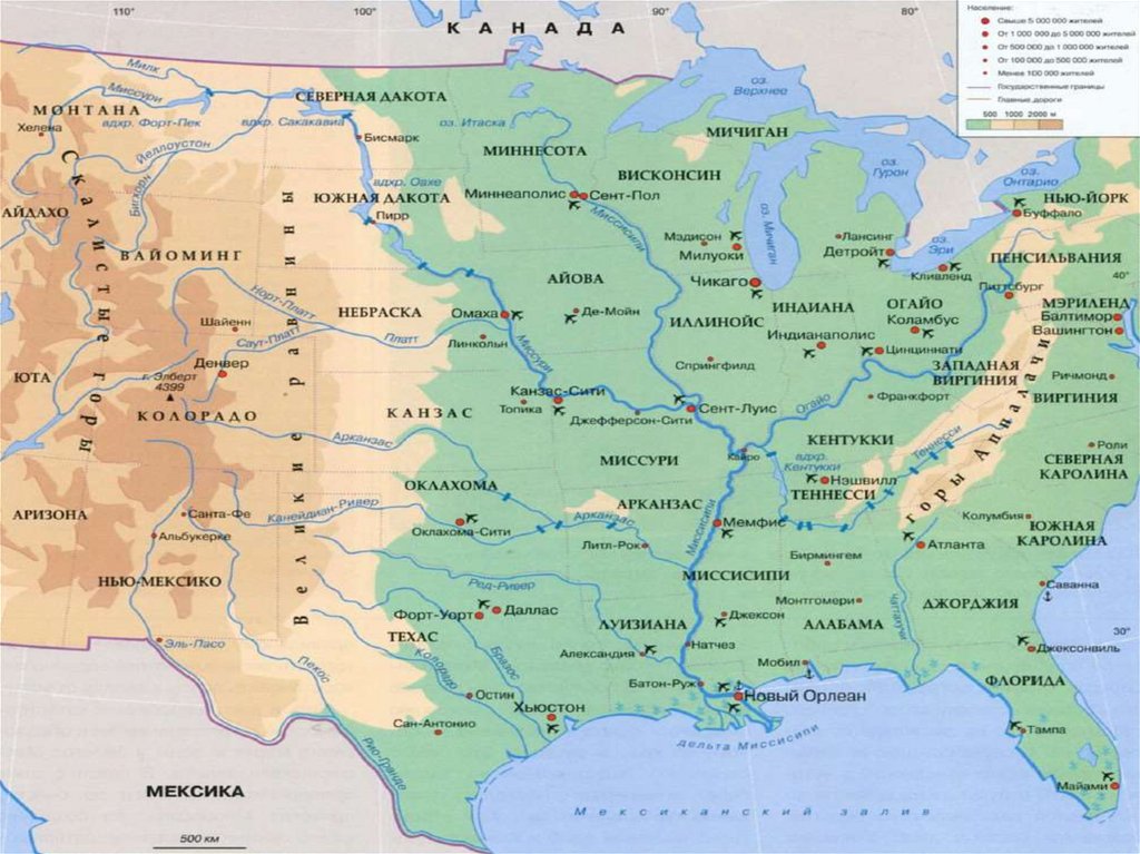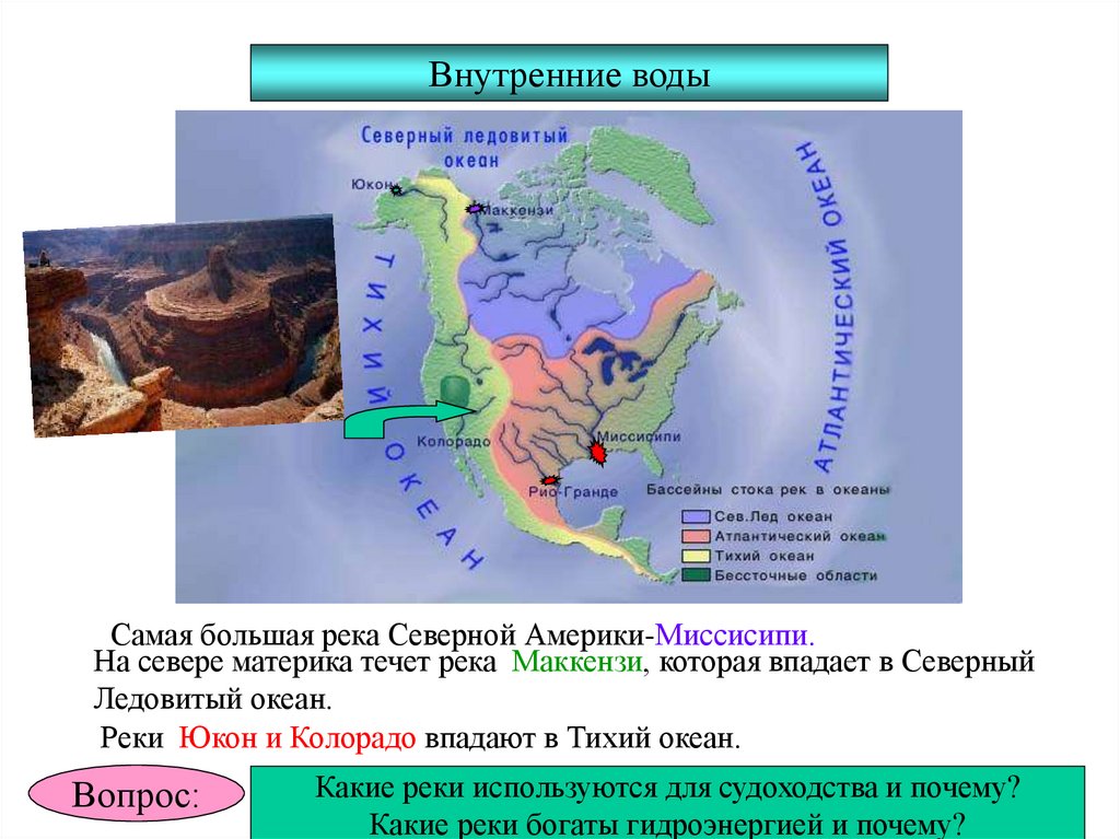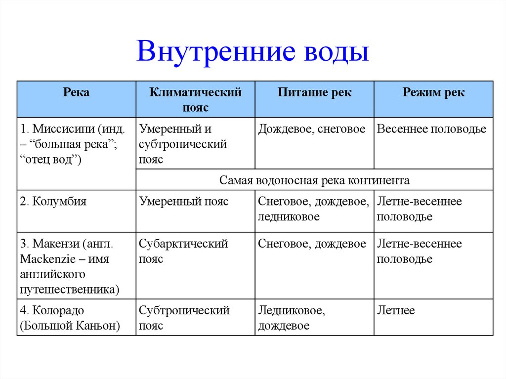 Внутренние водыСамая большая река Северной Америки-Миссисипи.