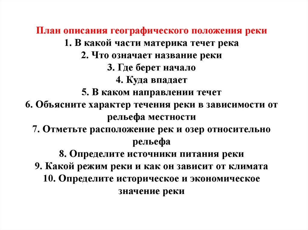 30. План описания географического положения реки 1. В какой части материка течет река 2. Что означает название реки 3. Где берет