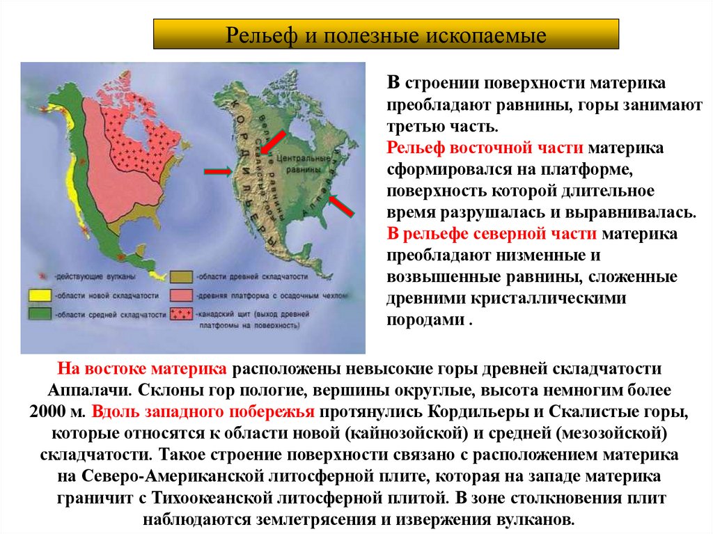 Рельеф и полезные ископаемыеВ строении поверхности материка