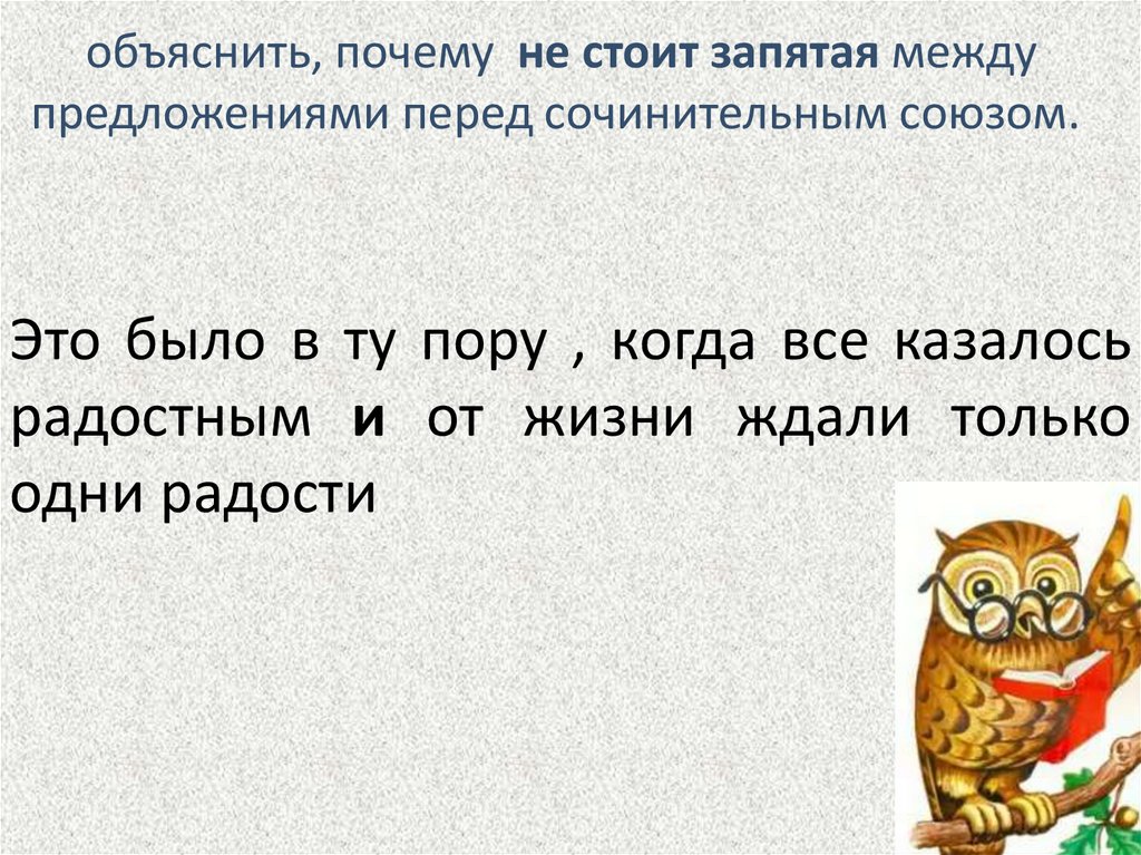 14. объяснить, почему не стоит запятая между предложениями перед сочинительным союзом.