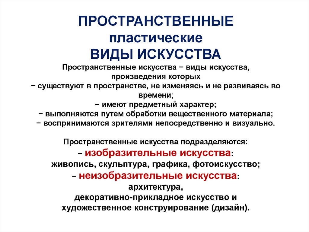 ПРОСТРАНСТВЕННЫЕ Изобразительные искусстваИзобразительное искусство — вид искусства, главной особенностью