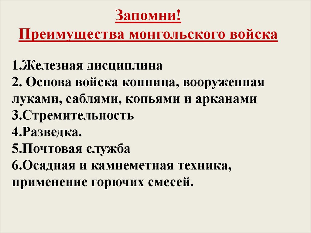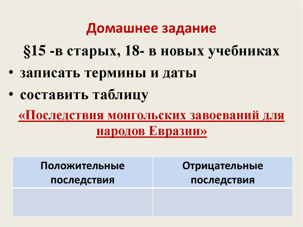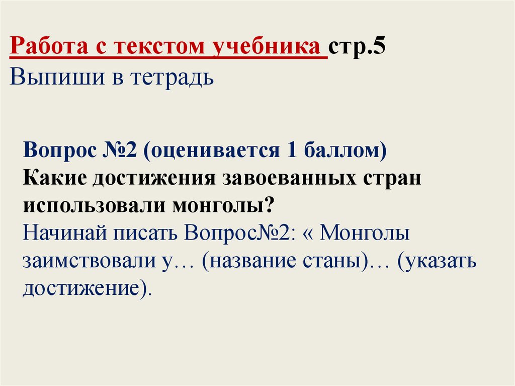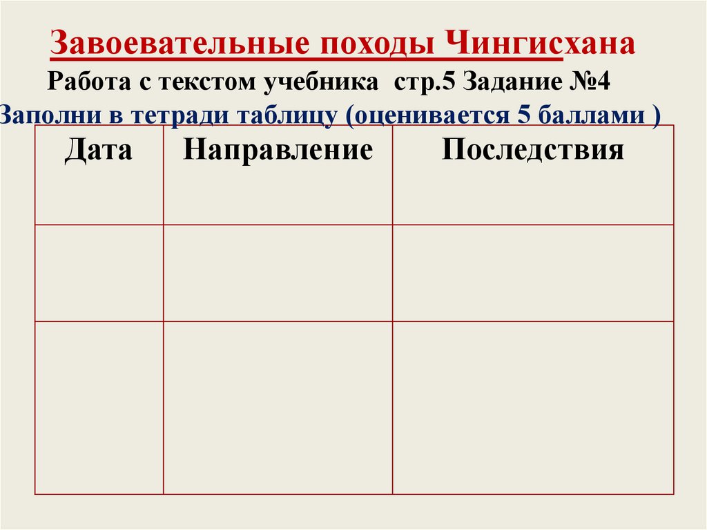 Завоевательные походы ЧингисханаРабота с текстом учебника стр.5 Задание №4