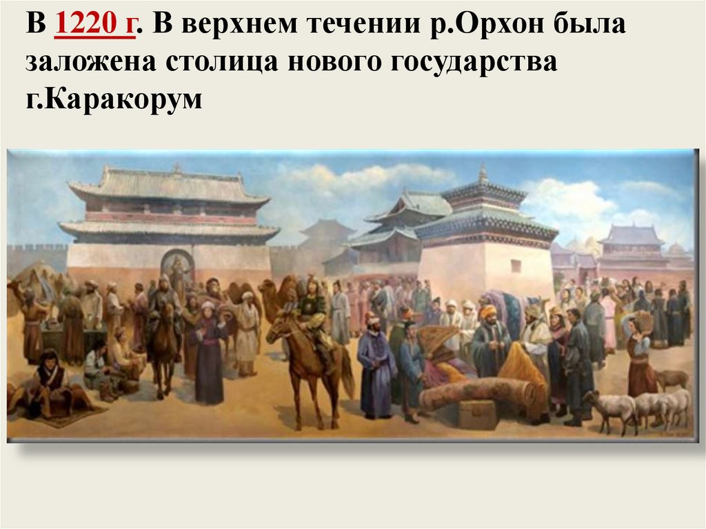 В 1220 г. В верхнем течении р.Орхон былазаложена столица нового государства