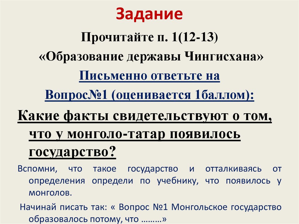 Начинай писать так: « Вопрос №1 Монгольское государство