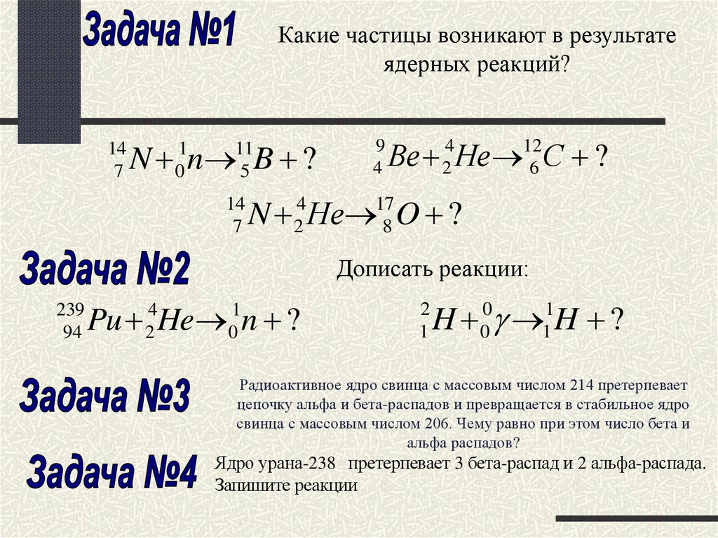 Какие частицы возникают в результатеядерных реакций?