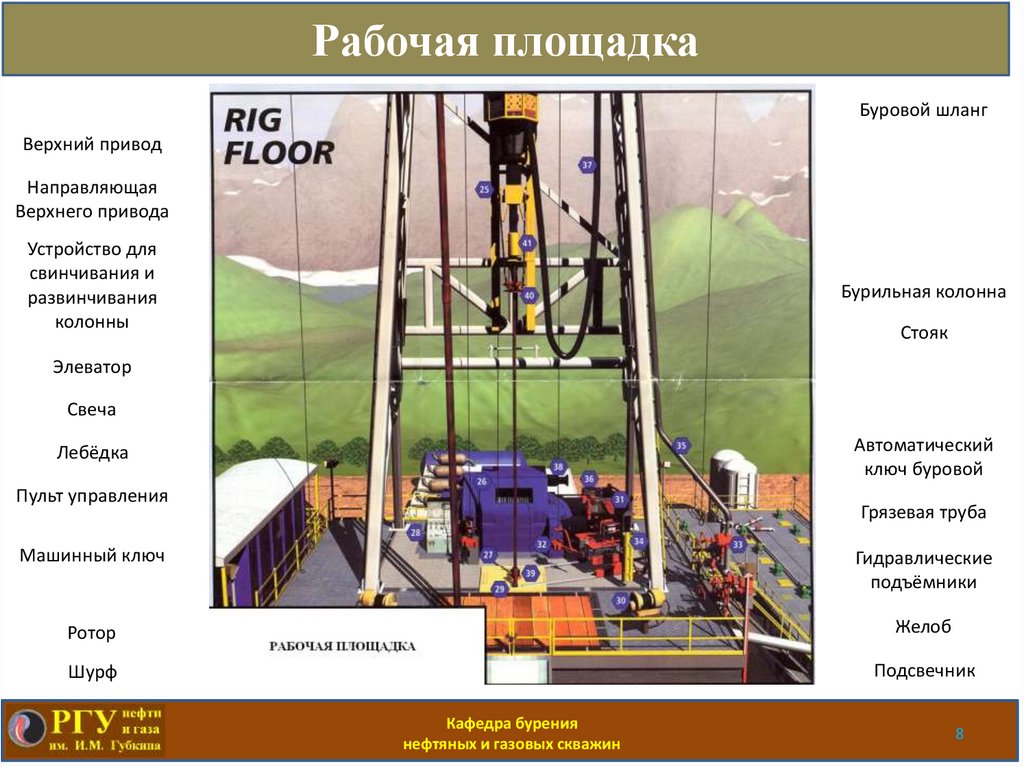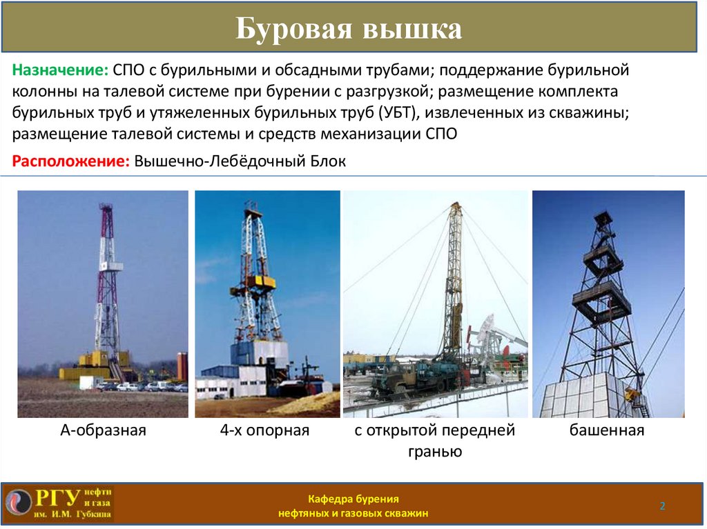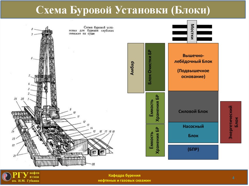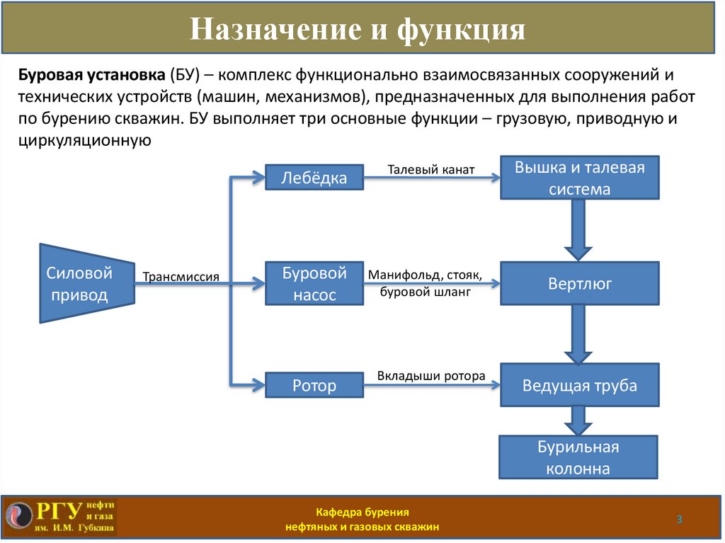 Буровая установка (БУ) – комплекс функционально взаимосвязанных сооружений итехнических устройств (машин, механизмов), предназначенных для выполнения работ