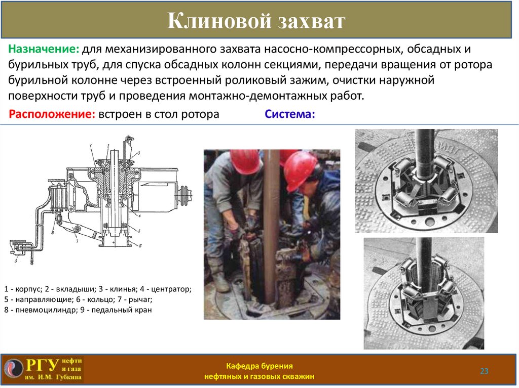 Назначение: СПО с бурильными и обсадными трубами; поддержание бурильнойколонны на талевой системе при бурении с разгрузкой; размещение комплекта
