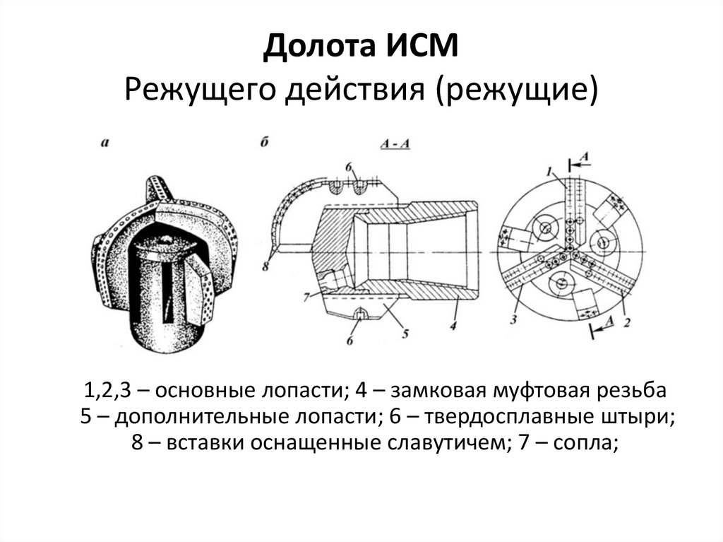 53. Долота ИСМ выпускаются 3 разновидностей: