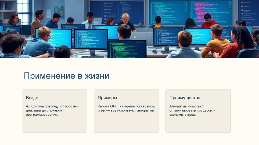 блюдо. В нашем случае алгоритмы помогают решать задачи, управлять