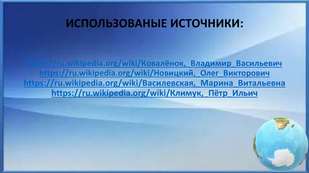 12. ИСПОЛЬЗОВАНЫЕ ИСТОЧНИКИ: https://ru.wikipedia.org/wiki/Ковалёнок,_Владимир_Васильевич