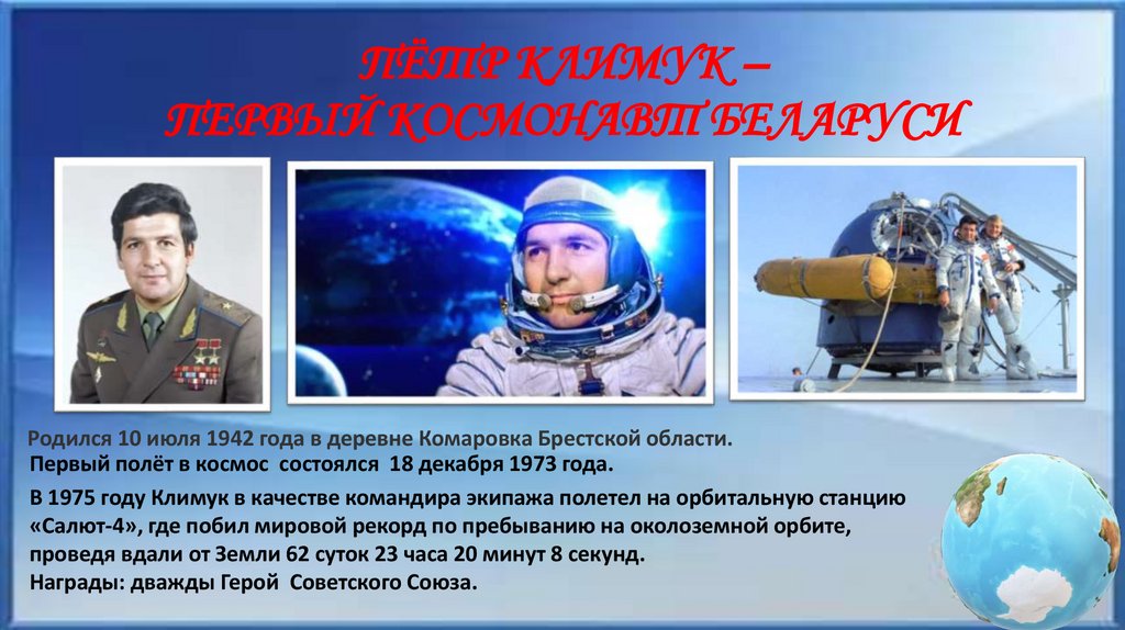 3. ПЁТР КЛИМУК – ПЕРВЫЙ КОСМОНАВТ БЕЛАРУСИ