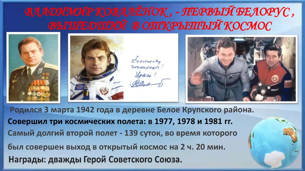 4. ВЛАДИМИР КОВАЛЁНОК , - ПЕРВЫЙ БЕЛОРУС , ВЫШЕДШИЙ В ОТКРЫТЫЙ КОСМОС