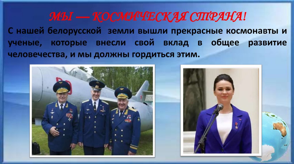 С нашей белорусской земли вышли прекрасные космонавты иученые, которые внесли свой вклад в общее развитие