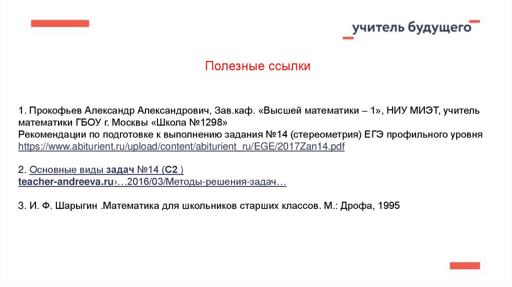Учитель математики МБОУ «СОШ №1» г.о. Протвино