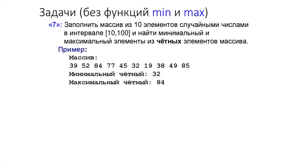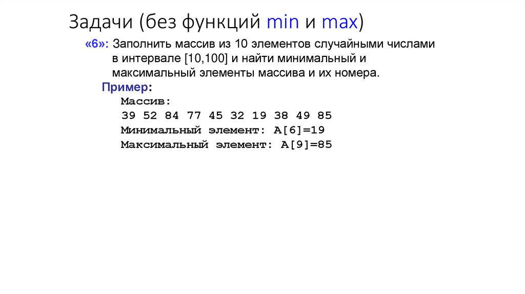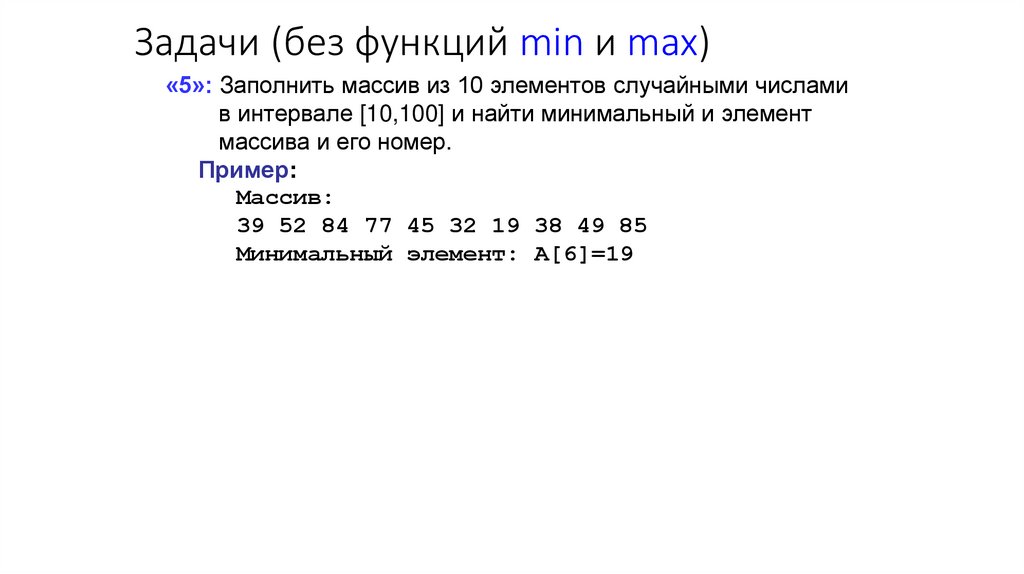 Задачи (без функций min и max)«5»: Заполнить массив из 10 элементов случайными числами