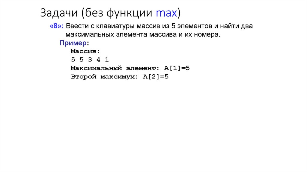 Задачи (без функции max)«8»: Ввести с клавиатуры массив из 5 элементов и найти два
