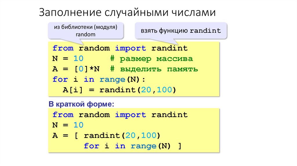 Задачи«3»: Заполните массив из 10 элементов случайными числами