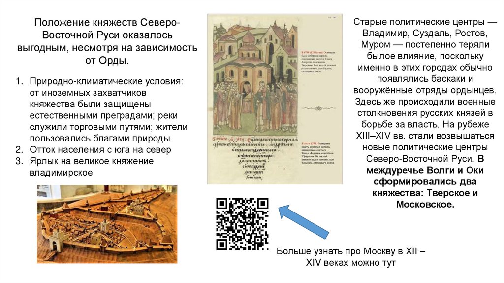 Положение княжеств СевероВосточной Руси оказалосьвыгодным, несмотря на зависимость